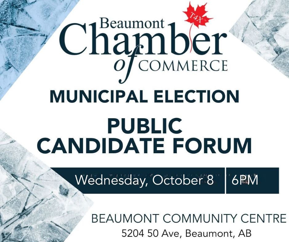 The Beaumont Chamber of Commerce is proud to host the upcoming Candidate Forum for this year’s municipal election. This event provides an excellent opportunity for the community to hear directly from all candidates running for office, as they share their platforms and answer important questions.