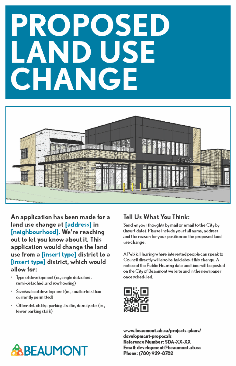 Some applications may be advertised through signs on-site, letters to neighbours or newspaper ads. These vary depending on the type of application, following rules in the Land Use Bylaw and the Municipal Government Act (MGA).