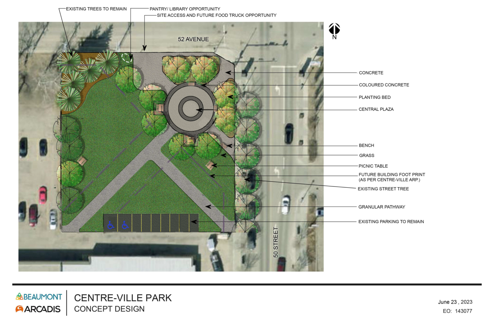 City updatesNeighbourhoodPlanning & Development Posted on: January 2, 2025 The Centre-Ville Beautification Project has been successfully completed! We invite you to explore the revitalized Centre-Ville Park and experience the transformed space firsthand. Project history A community space, in the heart of Beaumont. This exciting initiative, led by the City of Beaumont, aims to transform Centre-Ville Park into a gathering space for the residents of Beaumont. The Centre-Ville Park concept design is intended to: Enhance landscaping, Integrate with the 50th Street streetscape and Provide an open space to host small gatherings and events. Project background The City of Beaumont is advancing the concept design to beautify Centre-Ville Park, with construction set to begin in Fall 2023. Creating a vibrant space for locals and visitors to gather year-round and support business in the heart of Beaumont, this park design also aligns with the Centre-Ville Area Redevelopment Plan [pdf]. The concept design provides enhancements like: A design theme similar to the 50th Street streetscape. Grassed area for events and other community programming. Added trees, shrubs and various greenery. Plaza with decorative paving and seating (includes seating alcoves for accessible use). Gravel pathways. The concept design also retains features from the current park such as: Access and location for food truck parking in the north paved portion for festivals and other events. Access and location for the Karma Pantry and Library Box. Existing trees along the west boundary of the park adjoining the parking lot. Some parking spaces along the south boundary, including 2 accessible parking spots. Project schedule Concept Design – Summer 2023Preliminary/Detailed Design – Summer 2023Construction – Fall 2023Completion – December 2024